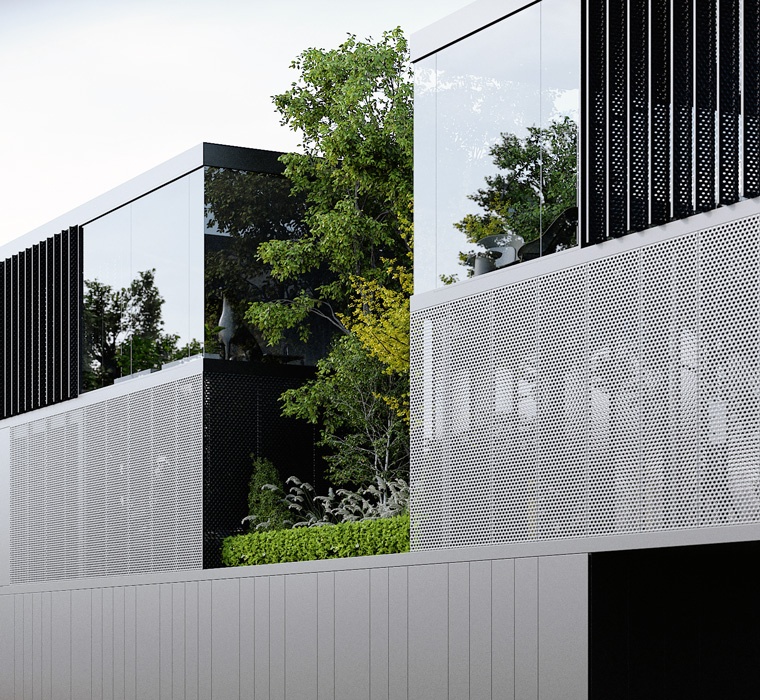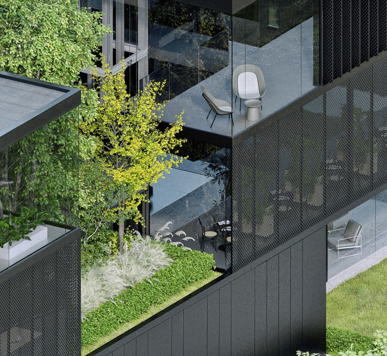Dzięki wcięciu w bryle możliwe jest skuteczne doświetlenie wnętrza obiektu, co poprawia jakość przestrzeni.